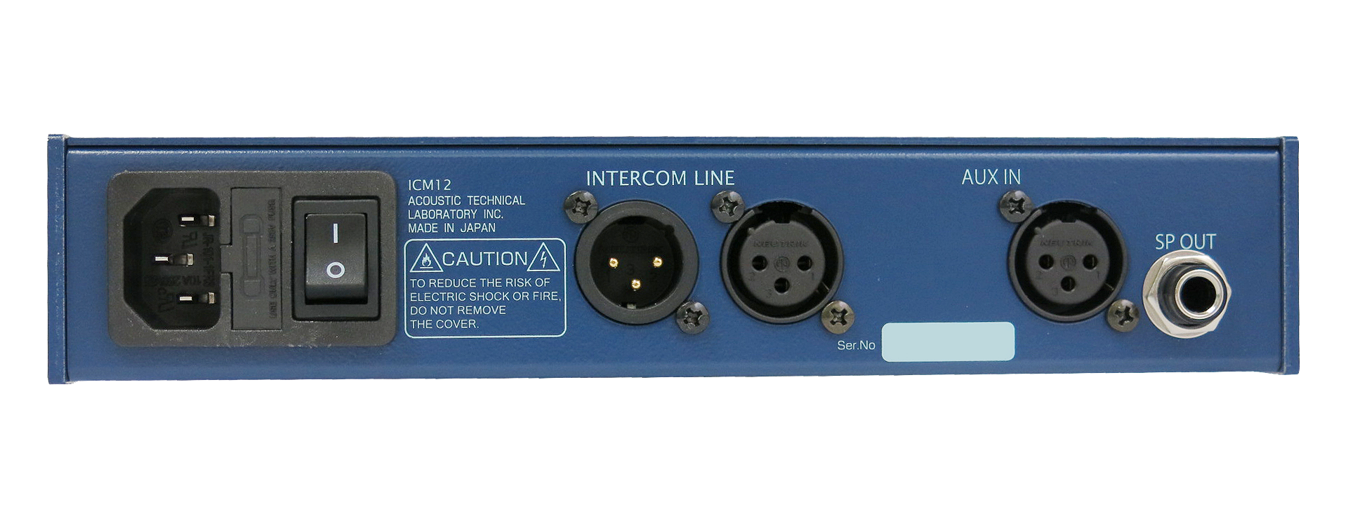- ヘッドフォンボリューム、マイクON/OFF SW、チャンネル選択SW(x2)、コールSW &ランプ(x2)、AUXセンドボリューム(x2)、録音ブザーON/OFF SW、サイドトーンキャンセラー(x2)、 電源ON/OFF